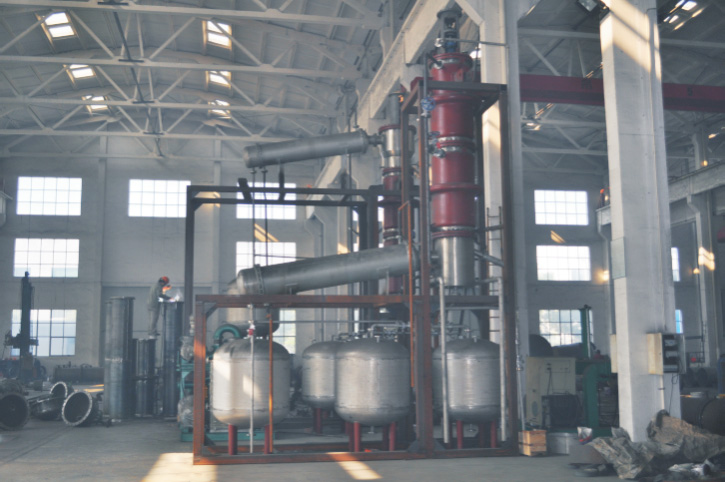 深深浸入在液膜里的刮膜片產(chǎn)生的強(qiáng)烈湍流,導(dǎo)致在加熱面產(chǎn)生一個(gè)較好的熱傳遞比其它轉(zhuǎn)子系統(tǒng)(例大金屬棒上套PTFE管),下列例子為異氰酸酯的提純從預(yù)聚物里,最終的含量小于0.1%。